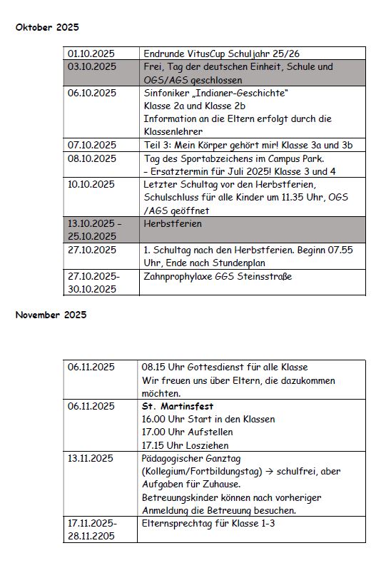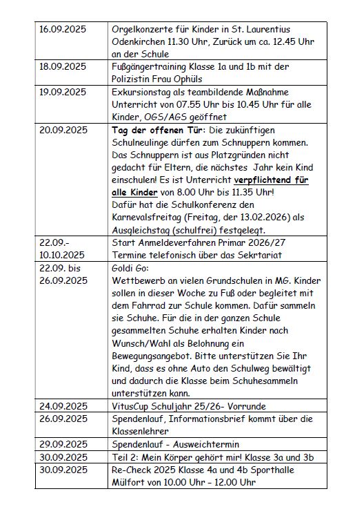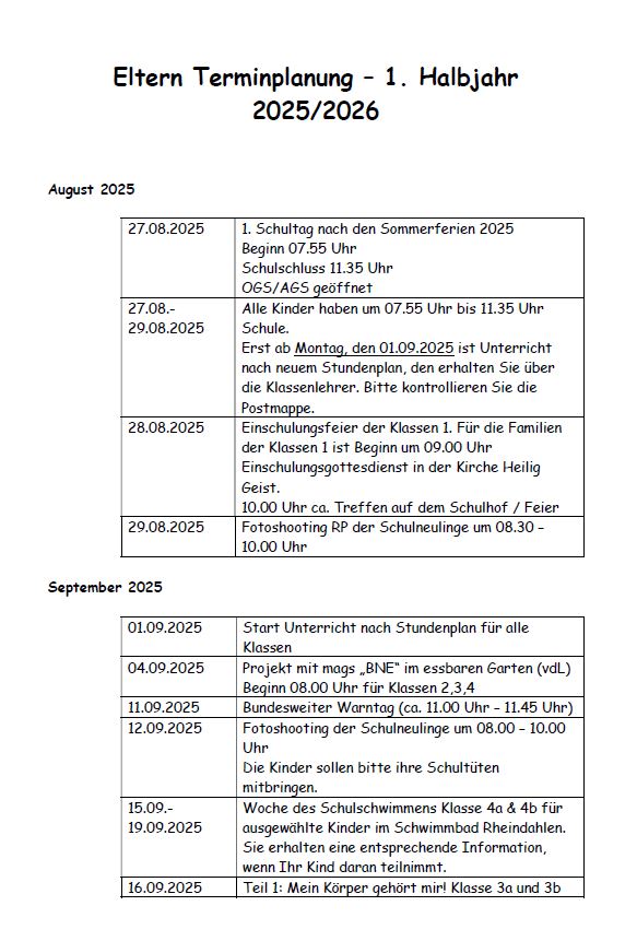 Termine 1. Halbjahr 2025/2026 Bitte haben Sie Verständnis, dass Termine noch dazukommen können oder ggf. Termine geändert werden müssen.
