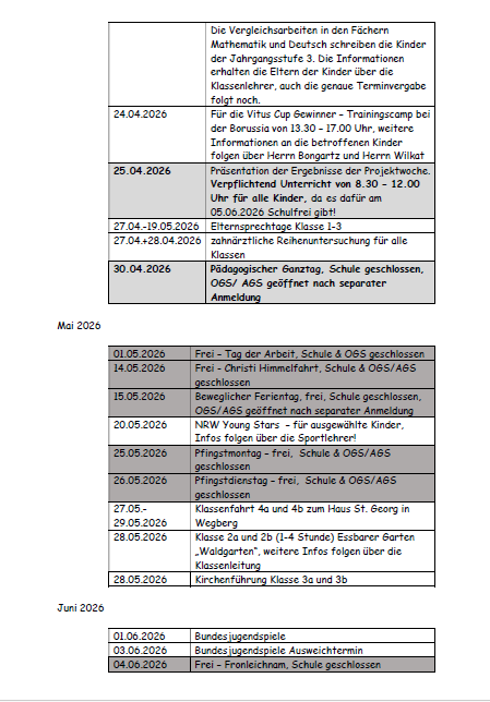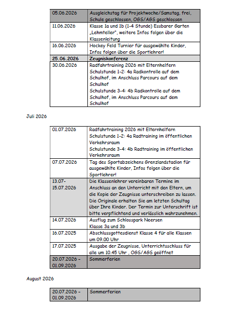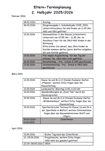 Termine 2. Halbjahr 2025/2026